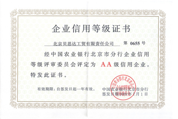 企業信用等級證書